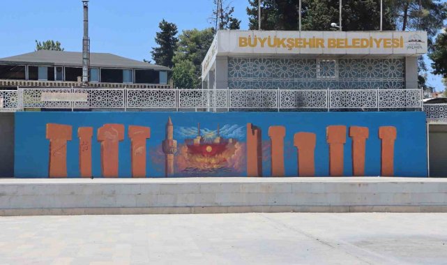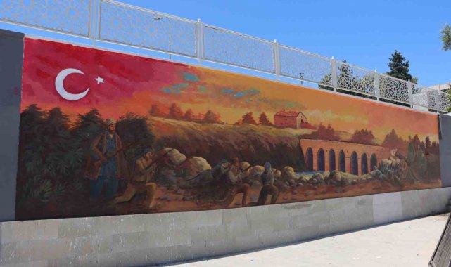 Duvar resimlerinde, dünyanın en eski tapınağı olarak bilinen Göbeklitepe'de bulunan meşhur sütun figürleri yer alırken, Şanlıurfa Kalesi'nin silueti, tarihi minare ve 11 Nisan Şanlıurfa'nın düşman işgalinden kurtuluşunu anlatan temsili görsellerle şehir hafızası canlandırıldı.