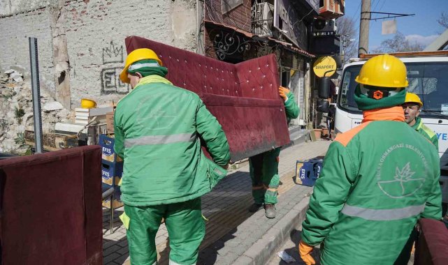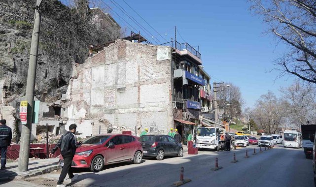 Bursa'da Çakırhamam Temiz Cadde üzerinde tarihi surların önünde inşa edilen 5 binanın yıkımı başladı.