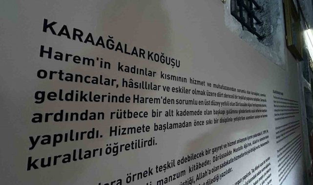 Karaağaların yetiştirilme sisteminden bahseden Başkan Yasin Yıldız, "3 katlı olmasının bu Karaağaların devlet protokolündeki yeri ve Osmanlı sarayındaki görevleriyle ilgisi var. Burada görev alan Karaağalar adeta bir okul gibi küçük birer çocukken buraya geliyor. Önce üst kattaki genel koğuşlara ardından aşağı doğru kıdem kazandıkça geliyorlar. Bununla birlikte Darüssaade ağası da hemen yanımızda bulunan mekanı kullanıyor. Ziyaretçimiz açısından baktığımızda ise eserimizin şöyle bir önemi var. Söylediğimiz gibi yapısal olarak hiç gezilememiş bir mekandır" cümlelerini kullandı.