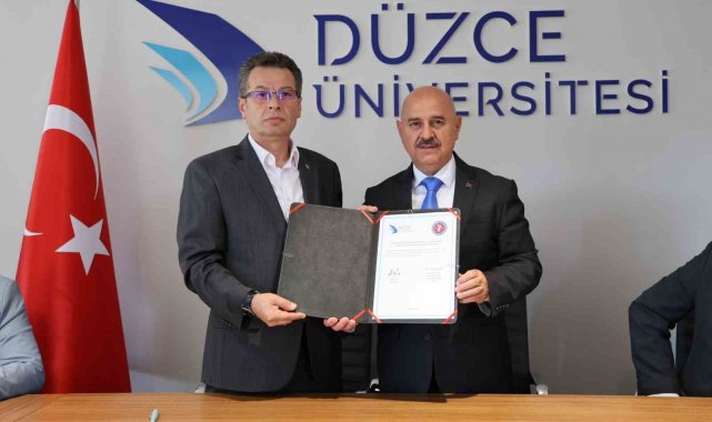 Düzce Üniversitesi'ndeki Sağlık-İş kolunda çalışmakta olan işçileri kapsayan Toplu İş Sözleşmesi'ni Düzce Üniversitesi adına Rektör Prof. Dr. Nedim Sözbir imzalarken, Türkiye Sağlık ve Sosyal Hizmet İşçileri Sendikası adına Genel Başkan Hakan Toy İmzaladı.
