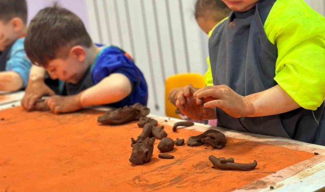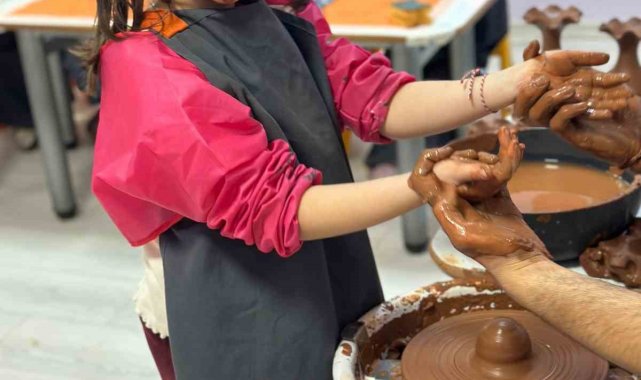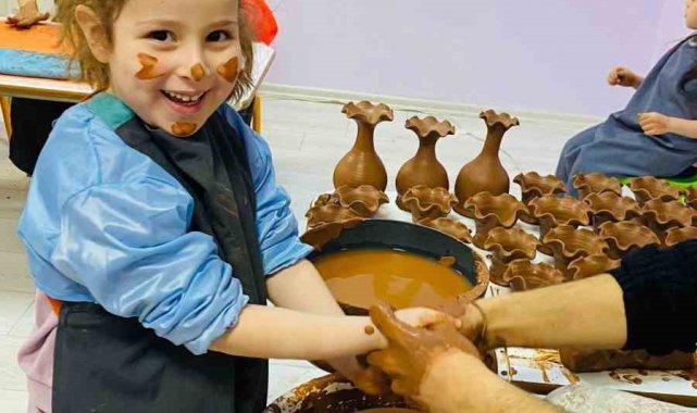 Cumhuriyet Üniversitesi Vakfı Okulları Özel Günay Soluk Anaokulu'nda düzenlenen çömlek etkinliğinde minik öğrenciler hem üretmenin hem de öğrenmenin keyfini yaşadı
