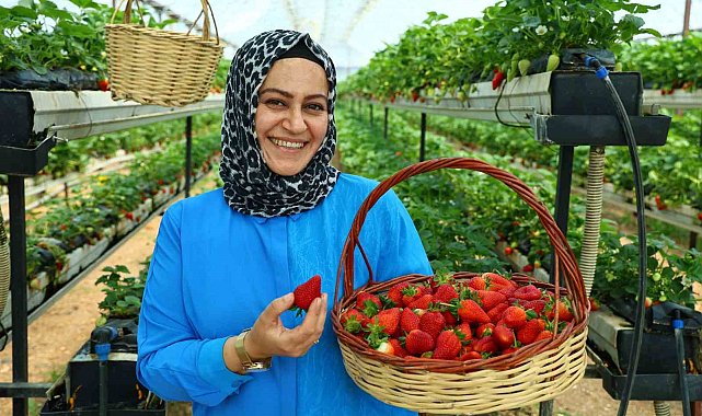 Kahramanmaraş'ta 7 dönüm alana kurulan modern serada topraksız tarım yöntemiyle üretilen çilekleri vatandaşlar dalından kendileri toplayarak satın alıyor.