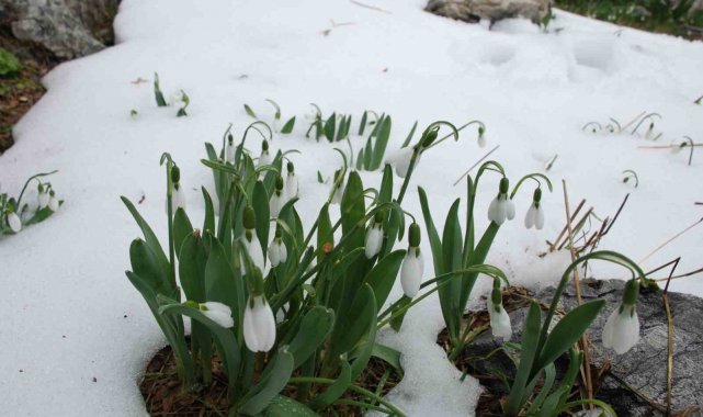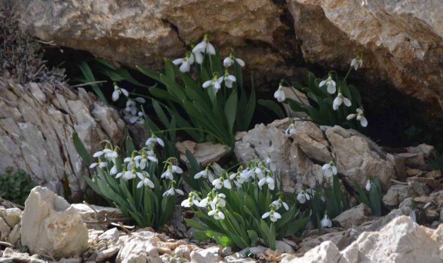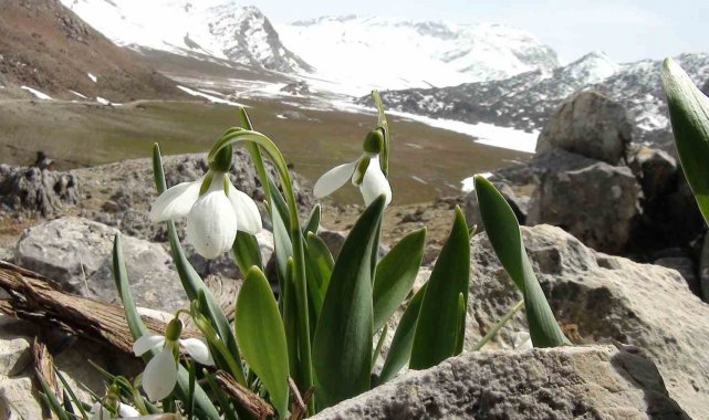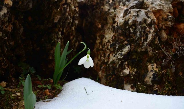 Toros Dağlarının beyaz gelinliği kardelenler yüzünü gösterdi