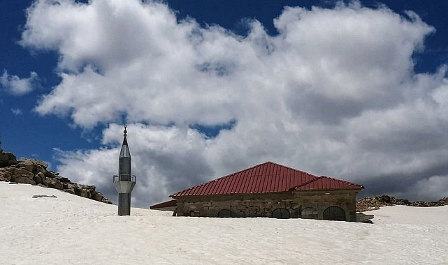 Toroslar'ın zirvesinde 741 yıllık cami kar altında kaldı