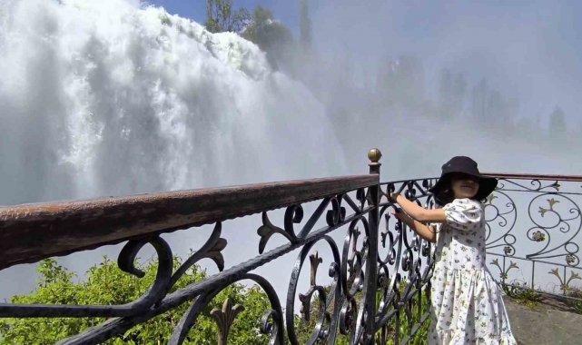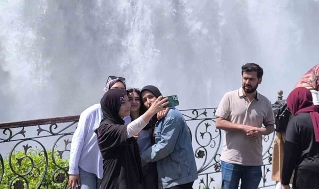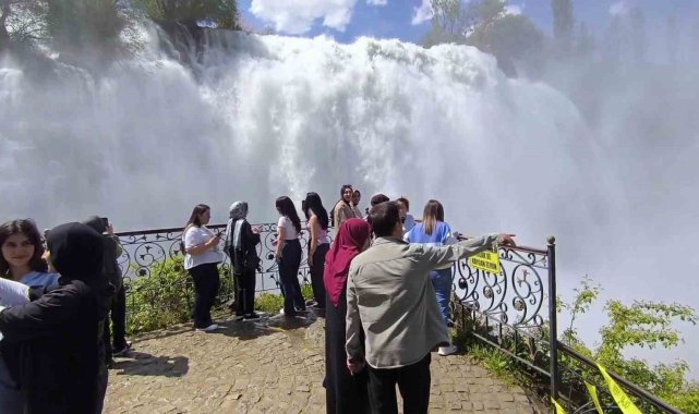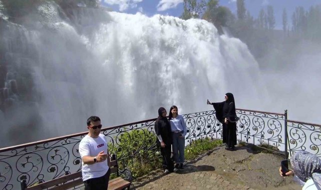 Tortum Şelalesi coştu, ziyaretçi akınına uğradı