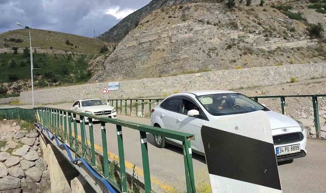 Erzurum'un Uzundere ilçesinde ziyaretçi akınına uğrayan Tortum Şelalesi girişindeki eski köprü yaya ve araç güvenliği için tehlike oluşturuyor.