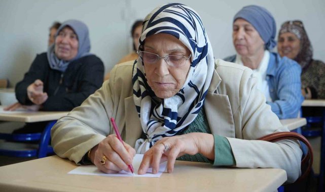 Gaziantep Büyükşehir Belediyesi Aktif Yaşam ve Eğitim Merkezi'nde Engelli Yaşlı ve Sağlık Hizmetleri Dairesi Başkanlığı tarafından açılan okuma-yazma kursuna nineler, büyük bir ilgi gösteriyor.
