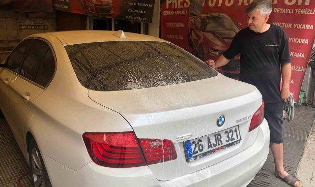 Eskişehir'de taşınılan toz yüzünden otomobiller çamurla kaplandı.