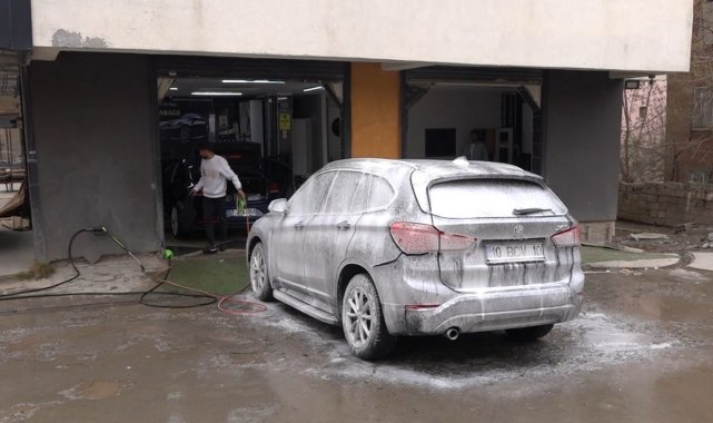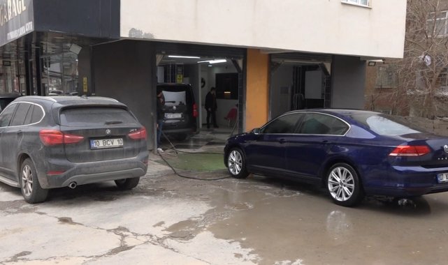 Muş'ta çamur yağışı sonrası oto yıkamacılarda yoğunluk oluştu.