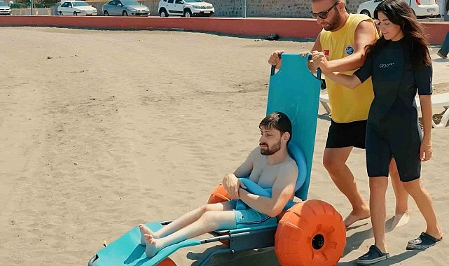 Trabzon'da özel gereksinimli bireylerin güvenle denize girebilmeleri için Yalıncak Plajı'nda engelsiz plaj hizmeti sunulmaya başlandı.