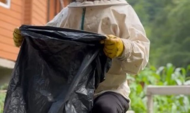 Trabzon'un Çaykara ilçesinde ilginç bir olay yaşandı. Bir ailenin evinin girişine yüzlerce arı üşüşürken, evde bulunan anne, çocuklarını korumak için dikkat çeken bir yönteme başvurdu. Eline aldığı tencere kapaklarını birbirine vurarak arıları uzaklaştırmaya çalışan anne, kısa süreli paniğe rağmen durumu soğukkanlılıkla kontrol altına aldı.