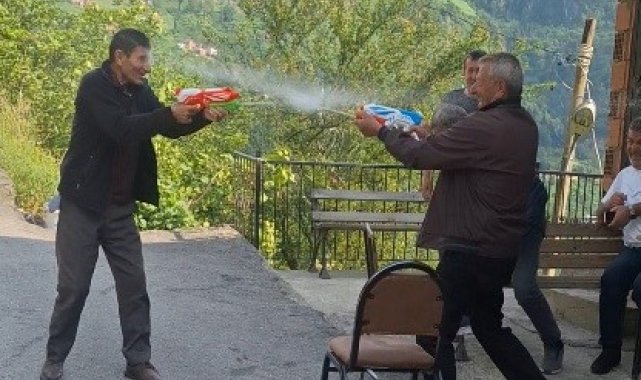 Trabzon'un Yomra ilçesine bağlı Çamlıyurt Mahallesi'nde gülümseten anlar yaşandı. Mahallede bulunan bir çay ocağında toplanan vatandaşlar ellerine aldıkları su tabancaları ile birbirini ıslatmak için kıyasıya yarıştı. Ümmet Can ve Dursun Şahin arasında yaşanan su savaşı mahalle sakinlerinin kahkahaları eşliğinde bir süre sürdü. İkilinin pes etmesiyle sona eren su savaşından mahalle sakinleri de nasibini aldı. Çay ocağının önünde oturarak o anlara gülümseyen mahalle sakinleri su tabancasının kendilerine dönmesiyle kaçacak yer aradı.