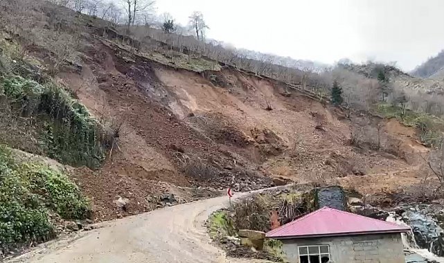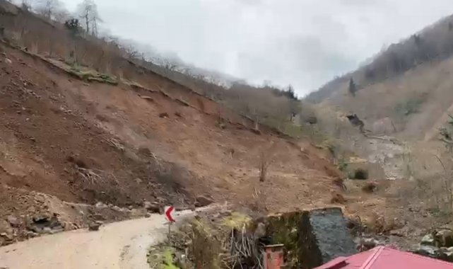 Trabzon'da etkili olan sağanak yağış sırasında heyelan meydana geldi. Yolun kapandığı heyelan anı cep telefonu kamerasıyla saniye saniye kaydedildi.