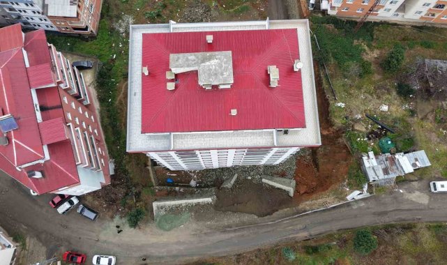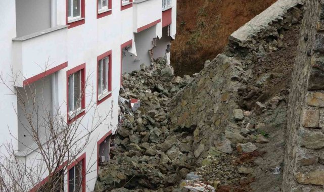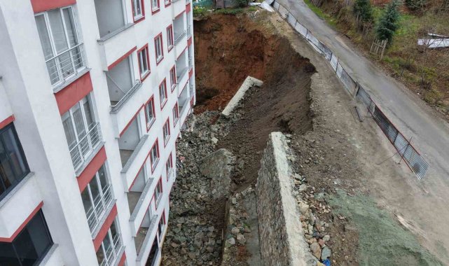 Trabzon'da istinat duvarı çöktü, 9 katlı bina zarar gördü