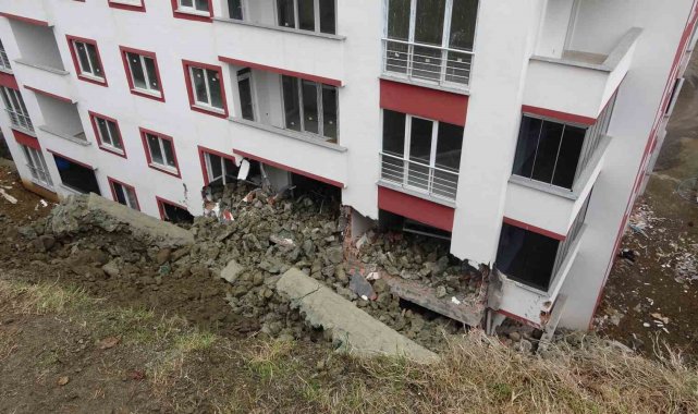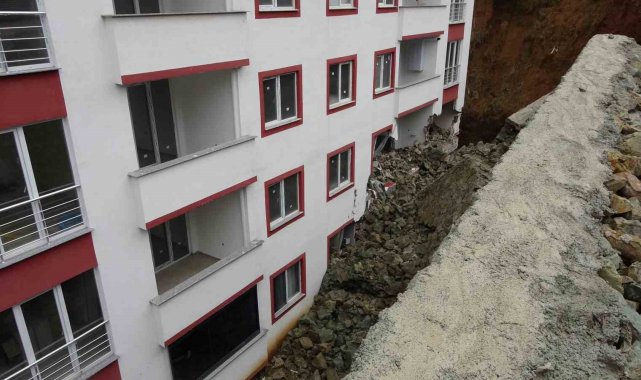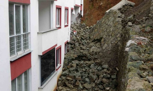 Trabzon'un Yomra ilçesinde sabah saatlerinde istinat duvarının çökmesi sonucu 9 katlı yeni bir binanın iki dairesinde hasar meydana geldi.