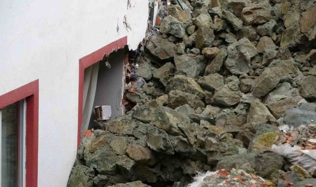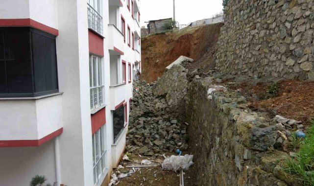 Olay, Yomra ilçesine bağlı Sancak Mahallesi Gümüş Sokak'ta meydana geldi. Edinilen bilgilere göre, yol kenarında bulunan istinat duvarı henüz belirlenemeyen bir nedenle sabah saatlerinde büyük bir gürültüyle çöktü. Çöken duvardan kopan taş ve toprak yığını, bitişiğinde bulunan 9 katlı yeni binanın iki dairesinin duvarını yıktı.