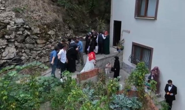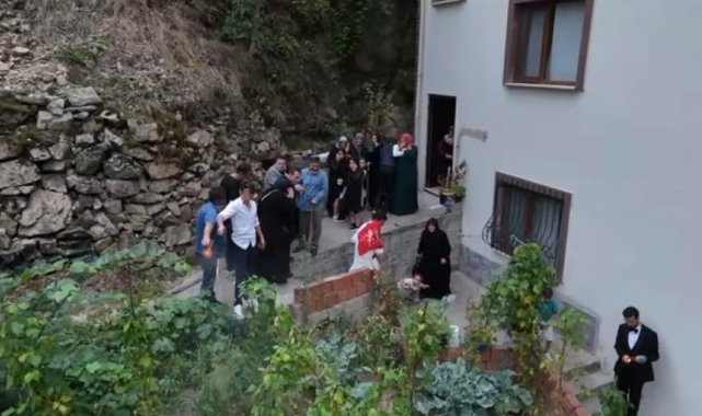 Trabzon'un Çaykara ilçesinde dün düzenlenen düğün merasiminde, gelin alma sırasında evin bahçesine doğru rastgele açılan ateş, faciaya neden oldu. Seken kurşunların isabet ettiği 1 kişi hayatını kaybetti, 2 kişi yaralandı. O anlar dron kamerasına yansıdı.
