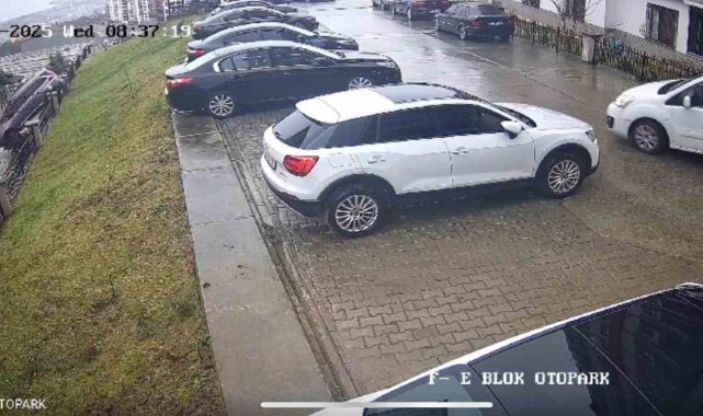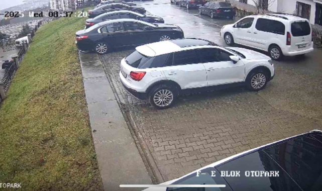 Trabzon'un Ortahisar ilçesinde önceki gün bir sitenin bahçesinde meydana gelen trafik kazası güvenlik kamerasına yansıdı.