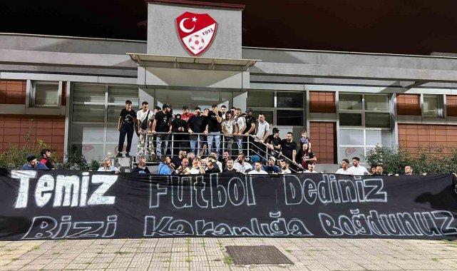 TFF binası önünde toplanan bordo-mavili taraftarlar, "Temiz futbol dediniz. Bizi karanlığa gömdünüz" yazılı pankart açarak tepkilerini dile getirdi. Grup adına konuşan Trabzonspor Taraftarlar Derneği Başkanı Bekir Kodalak, hakem kararlarının artık oyunun önüne geçtiğini vurguladı.