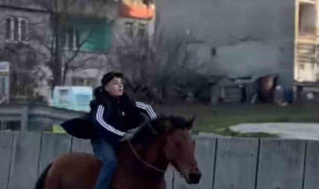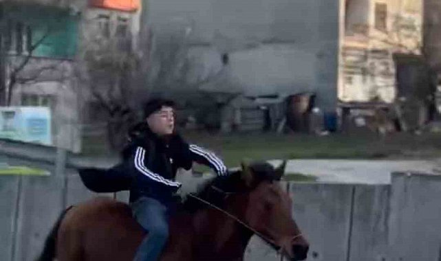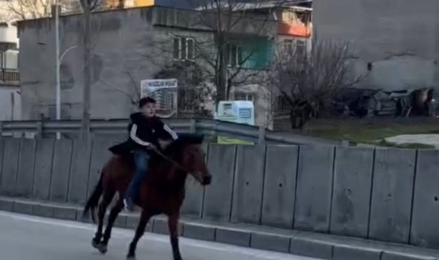 Bursa'nın Yıldırım ilçesinde 15-16 yaşlarındaki bir genç bindiği atıyla trafiğe çıktı. Sol şeritten dört nala koşturduğu atıyla kilometrelerce ilerleyen genç, trafikte seyreden otomobil sürücülerini şaşkına çevirdi. Bazı sürücüler de ilginç anları ölümsüzleştirip atın arkasında yoluna devam etti. Amatör kameralara yansıyan genç, dört nala koştuğu atıyla bir süre ilerledikten sonra kayıplara karıştı.