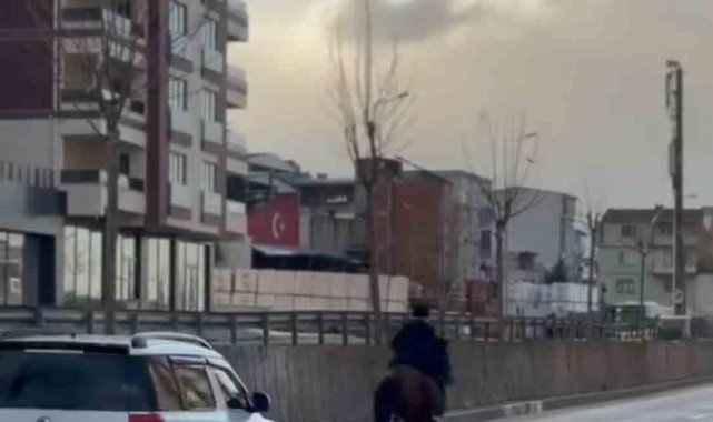 Trafiğe atla çıkan genç anayolda dört nala koştu