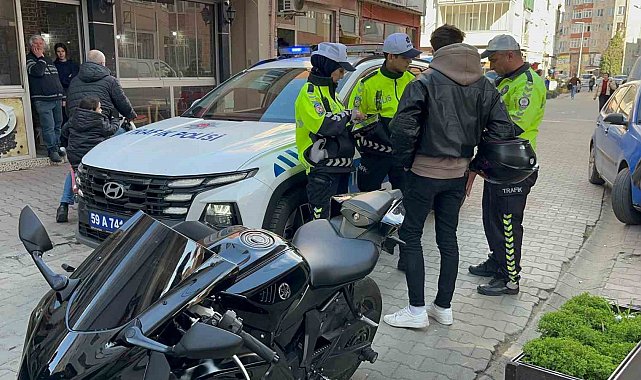 Tekirdağ'ın Çorlu ilçesinde plakasını kapattığı ve trafiği tehlikeye düşürdüğü belirlenen motosikletli, polis tarafından yakalandı. 20 bin 45 lira para cezası kesilen sürücünün 2 ay süreyle ehliyetine el konuldu.