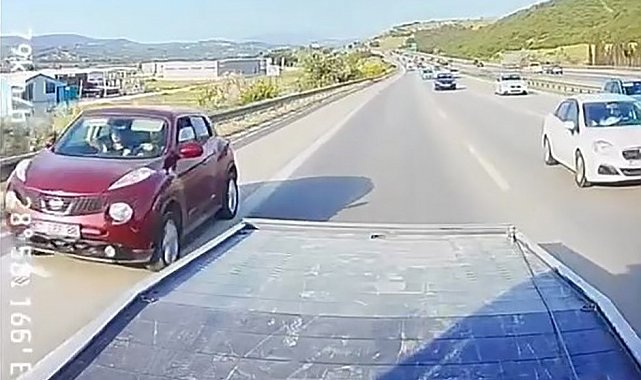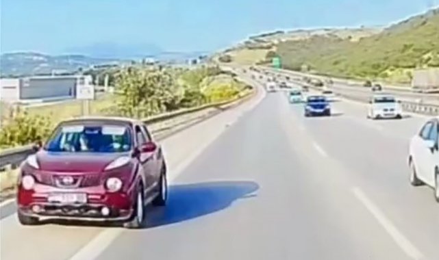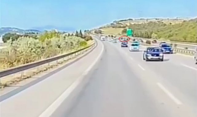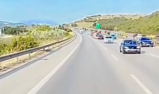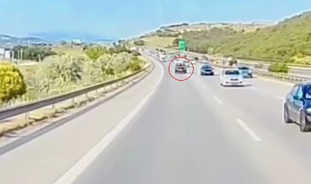 İzmir-İstanbul otobanında ilerleyen sürücüler, bazı bölgelerde yoğun bir trafikle karşılaştı. Bu yoğunluktan sıkılan sürücülerden biri, hızla akan trafiği tehlikeye düşürerek en soldan en sağ şeride zikzak çizerek geçti. Daha sonra emniyet şeridini de ihlal eden sürücü, önündeki çekici kamyonu da sağladı.