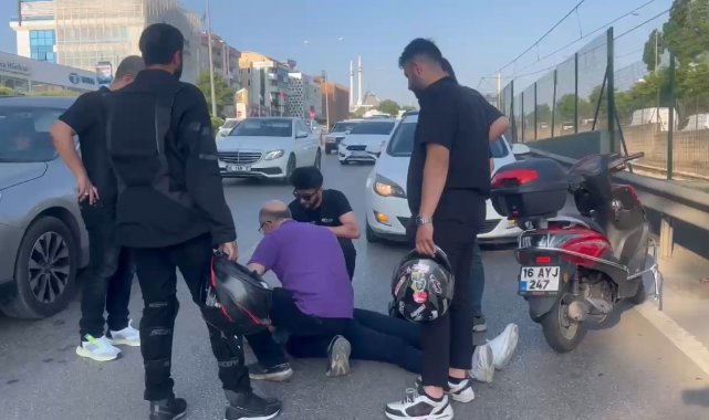 Kaza, merkez Nilüfer ilçesi İzmir yolu üzerinde meydana geldi. Belli hızla ilerleyen araçların arasından hızla geçen motosikletliler, trafiğin durmasıyla bir biriyle çarpıştı. 16 AYJ 247 plakalı motosiklet sürücünün yere düşmesiyle trafik tamamen durdu. İzmir istikameti tek şeridin kapandığı kaza sonrası, yaralı caddenin ortasında yatarak sağlık ekiplerini bekledi.