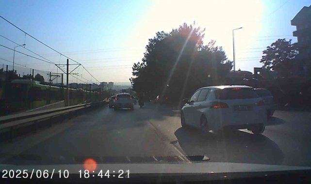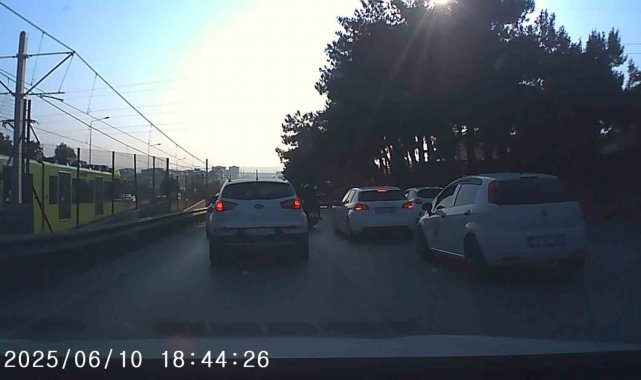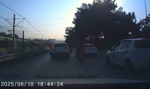Kaza, araç kamerasına da saniye saniye yansırken, motosikletlilerin araçların arasından akrobasi yapar gibi ilerlemesi de kayda alındı.