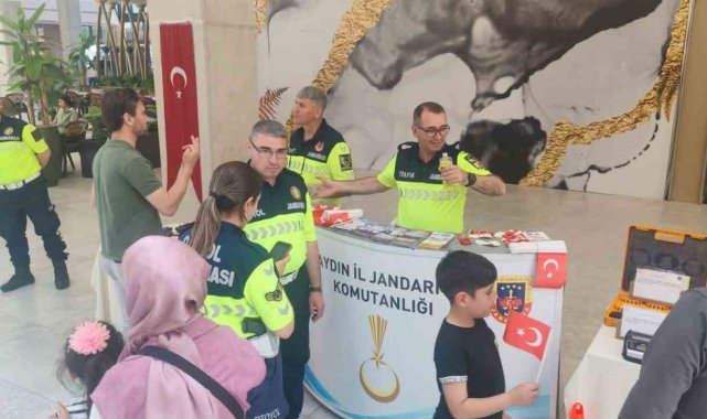Aydın İl Jandarma Komutanlığı ekipleri tarafından Trafik Haftası dolayısıyla açılan standa vatandaşlar yoğun ilgi gösterdi.