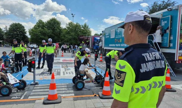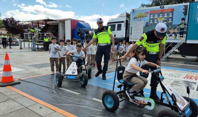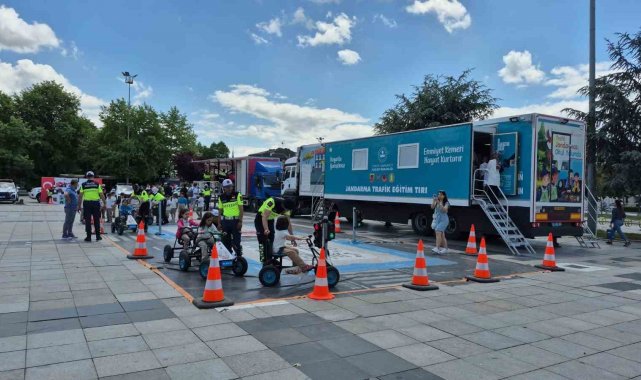 Düzce Anıtpark'ta İl Jandarma Komutanlığı koordinesinde mobil trafik eğitim tırında düzenlenen etkinlikte öğrencilere trafik güvenliği konusunda hem teorik hem de uygulamalı eğitimler verildi. Etkinlik alanında bulunan emniyet kemeri simülasyon sistemini de inceleyen öğrencilere, emniyet kemeri kullanımının yalnızca ön koltukta değil, arka koltukta da hayati önem taşıdığı vurgulandı. Simülasyon tırına binen bir vatandaş, arabaya her bindiklerinde emniyet kemeri taktıklarını söyleyerek, "En kısa mesafede bile emniyet kemeri kullanıyoruz" dedi.