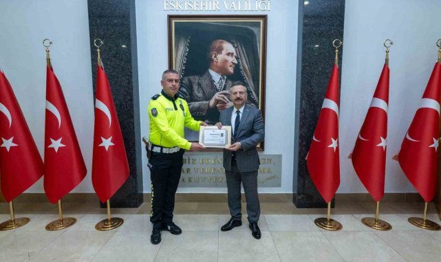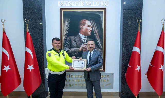 Eskişehir Valisi Hüseyin Aksoy, emniyet ve jandarmaya bağlı trafik personeline başarı belgesi takdim etti.