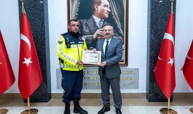 Vali Hüseyin Aksoy, trafik güvenliğinin sağlanmasında göstermiş oldukları gayretli, özverili ve başarılı çalışmalarından dolayı Emniyet Müdürlüğü ve Jandarma Komutanlığı'na bağlı trafik personeline başarı belgesi verdi. Trafik güvenliğinin toplumun huzur ve güvenliği açısından taşıdığı öneme dikkat çeken Vali Aksoy, fedakarca görev yapan tüm personele teşekkür ederek başarılarının devamını diledi. Belgelerin takdim edilmesinin ardından toplu fotoğraf çekimi yapıldı.