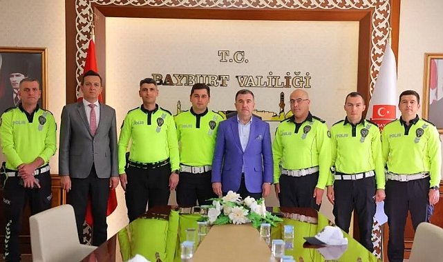 Bayburt'ta trafik güvenliği alanında özveriyle çalışan trafik polisleri başarı belgesiyle ödüllendirildi.