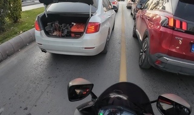 Eskişehir'de trafikte bagajı açık bir şekilde seyreden otomobili görüp sürücüsünü uyaran motosiklet kullanıcısı, rica üzerine bagaj kapağını kapatıp yoluna devam ederken, yaşananlar gülümsetti.