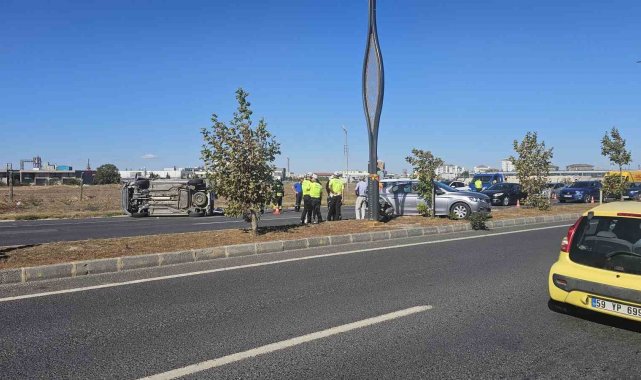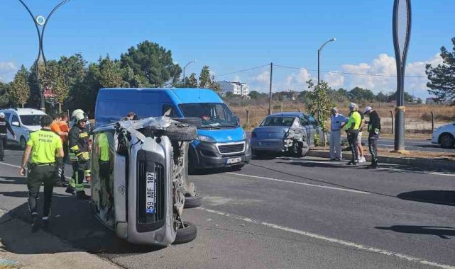 Kapaklı yolu üzeri Yünsa Kavşağı mevkiinde 59 ADF 187 plakalı hafif ticari araç, kırmızı ışık nedeniyle bekleyen 33 SN 1933 plakalı otomobile çarptı. Çarpmanın etkisiyle otomobil refüje savrulurken hafif ticari araç yan yattı. İhbar üzerine kaza yerine polis, itfaiye ve sağlık ekipleri sevk edildi. Yaralanan 2 kişi, ilk müdahalelerinin ardından Çerkezköy Devlet Hastanesi'ne kaldırıldı. Polis ekipleri, kazayla ilgili inceleme başlattı.
