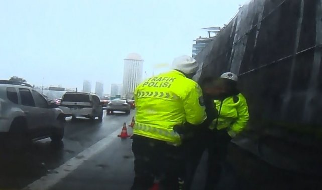 Küçükçekmece'de aracıyla seyir halindeyken boğazına şeker kaçan sürücü, polisin Heimlich manevrası ile hayata döndü. O anlar sürücünün araç kamerasına yansıdı.