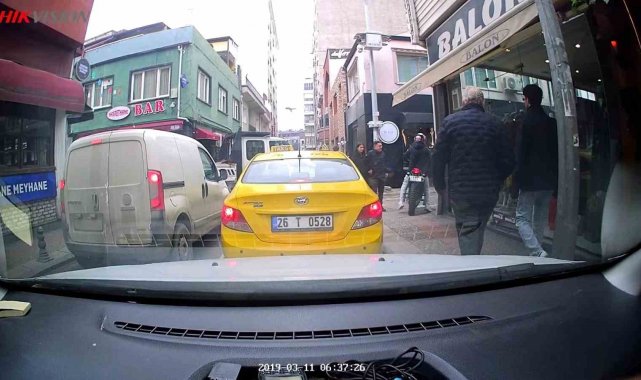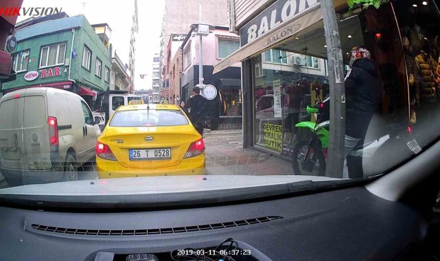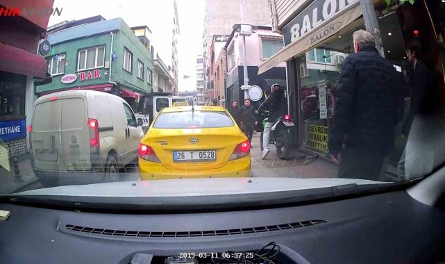 Trafikte kırmızı ışıkta beklememek için kaldırıma çıktı