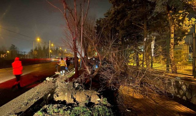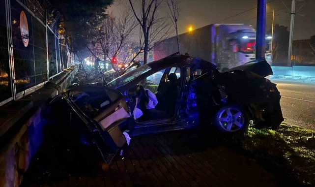 Trafikte makas atan araç önce ağaca, ardından aydınlatma direğine çarptı: 2 ağır yaralı