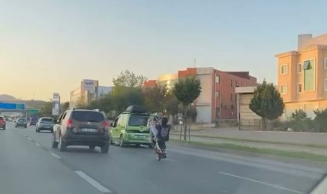 Bursa'da bir vatandaşın cep telefonu kamerasına yansıyan görüntüler, 'bunlar ne zaman akıllanacak' sorusunu akıllara getirdi. Hızla ilerleyen araçların arasında motosikletiyle akrobasi hareketleri yapan sürücü, kendi olduğu kadar herkesi tehlikeye attı. Motosikletinin önünü kaldıran şahıs, uzun süre o şekilde ilerledi.