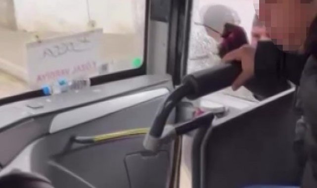 Trafikte tartıştığı servis aracının camını kaskıyla kırdı