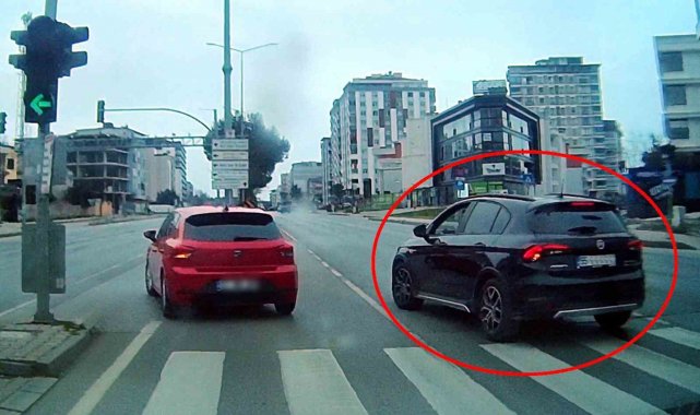 Trafikte en küçük bir ihmalin dahi ağır sonuçlara yol açabileceği bilinirken, bazı sürücülerin sorumsuz davranışları dikkat çekti. Kentte kaydedilen görüntülerde, sağ şeritten ilerleyen bir otomobilin, ışığın yeşile dönmesiyle birlikte hareket eden araçların önüne ani şekilde kırarak U dönüşü yaptığı görüldü. Bu tehlikeli manevra, muhtemel bir kazayı saniyelerle atlattı.