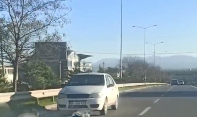 Bafra çıkışındaki bölünmüş yola ters yönden giren bir araç, panik yaparak geri geri gitmeye başladı. Sürücü ters yönde hareket ederek hem kendi canını hem de diğer sürücülerin güvenliğini tehlikeye düşürdü. O anlar ise başka bir sürücü tarafından cep telefonu kamerasıyla kaydedildi.