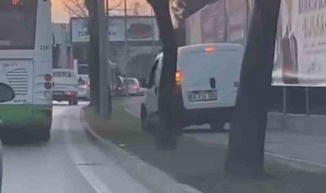 Bursa'da bir sürücü, trafikten kaçmak için aracıyla kaldırıma çıktı. İlginç anlar amatör kameraya yansıdı.