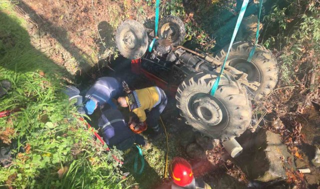 Bursa'nın Orhangazi ilçesinde köprüden dere yatağına uçan traktörde sıkışan yaşlı adam, vinç yardımıyla kurtarılıp hastaneye kaldırıldı.
