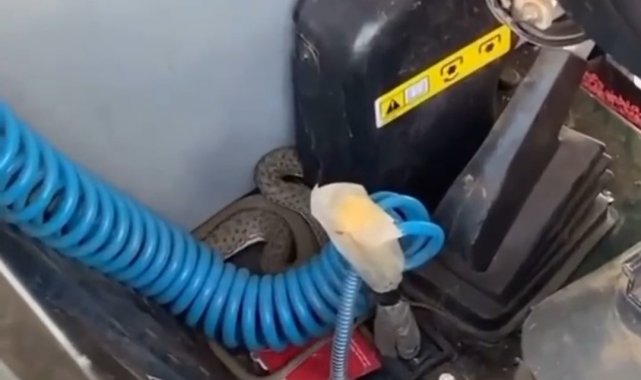 Siirt'in Kurtalan ilçesinde tarlasında çalışan çiftçi Ali Yılmaz, kullandığı traktörün şoför koltuğu kısmında yaklaşık 2 metrelik yılanı görünce panik yaşadı. O anları cep telefonuyla kaydeden Yılmaz, kısa süreli bir korku yaşadığını ancak yılanın traktörden uzaklaştırılmasıyla derin bir nefes aldığını söyledi.