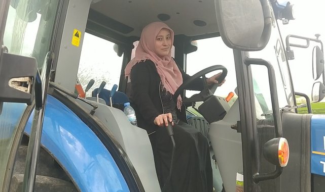Traktörün direksiyonuna geçen kadın çiftçi, erkeklere taş çıkartıyor