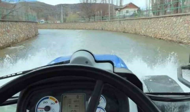 Konya'nın Bozkır ilçesinde bir çiftçinin temizlik amacıyla traktörüyle Çarşamba Kanalı'na girdiği anlar, çevredeki vatandaşlar ve sosyal medya kullanıcıları tarafından ilgiyle karşılandı.