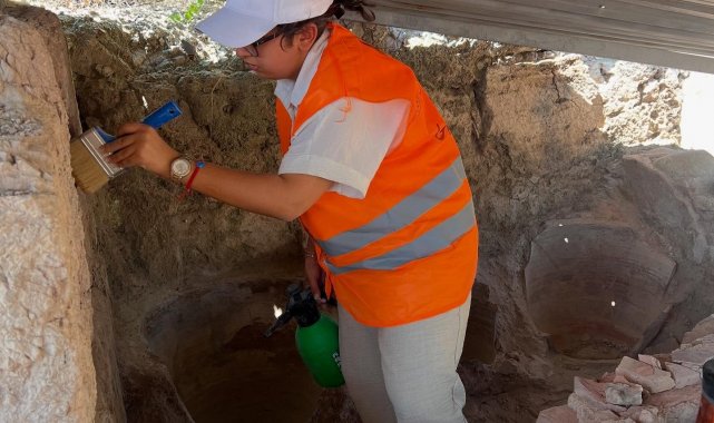 Aydın'ın ilk yerleşim yerlerinden olduğu düşünülen Tralleis Antik Kenti'nde 2025 yılı kazı çalışmaları hamam gymnasium kompleksinde devam ediyor.