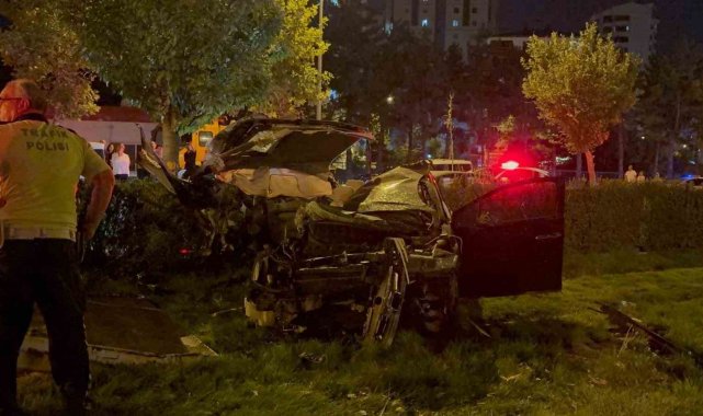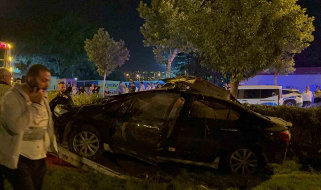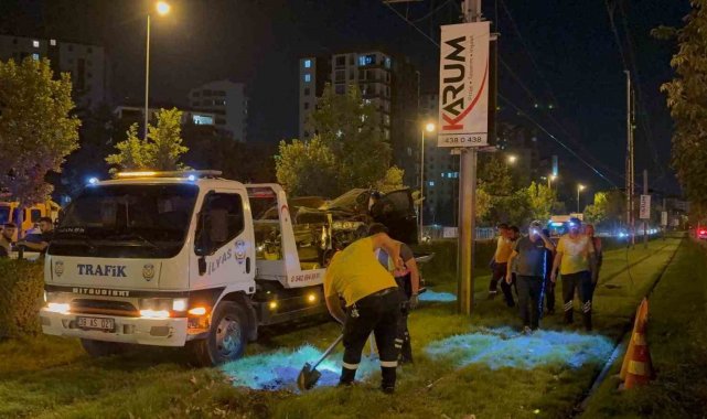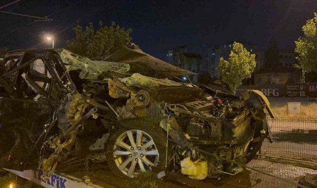 Tramvay yoluna uçan otomobil hurdaya döndü: 1 ölü, 1 yaralı